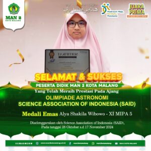 Alya Raih Medali Emas di Olimpiade Astronomi Nasional SAID 2024