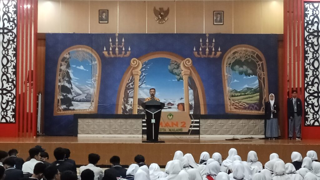 Malang, 17 Februari 2025 — Sebanyak 470 peserta didik MAN 2 Kota Malang dilepas secara resmi oleh Kepala Madrasah, Dr. H. Samsudin, M.Pd., dalam acara pelepasan kegiatan SUKA SUJABAJO (Studi Kampus Perguruan Tinggi Favorit di Surabaya, Jakarta, Bandung, dan Yogyakarta/Jawa Tengah) Tahun 2025 yang berlangsung di Aula Madrasah, Senin pagi (17/2/2025). Sebelum acara pelepasan, seluruh peserta didik melaksanakan Sholat Subuh berjamaah di Masjid Al Falah, MAN 2 Kota Malang.