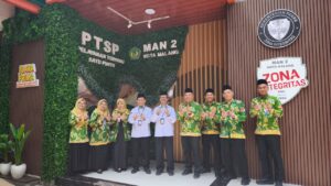 “Selamat datang di MAN 2 Kota Malang, khususnya di ruang PTSP dan ruang Kepala Madrasah yang baru saja kami renovasi beberapa minggu lalu. Renovasi ini merupakan upaya kami memberikan pelayanan prima kepada pengguna layanan madrasah,” tuturnya.
