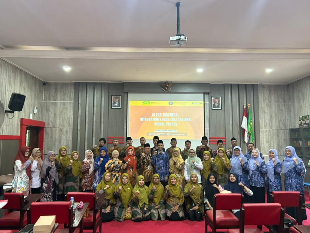 Kota Malang, 19/11/2025 – Sebanyak 60 guru Bahasa Inggris dari tingkat Madrasah Aliyah (MA) dan Madrasah Tsanawiyah (MTs) di Malang Raya mengikuti kegiatan “Training Day 2: AI for Teachers: Integrating Local Culture and Moral Values” pada hari Rabu, 19 November 2025.