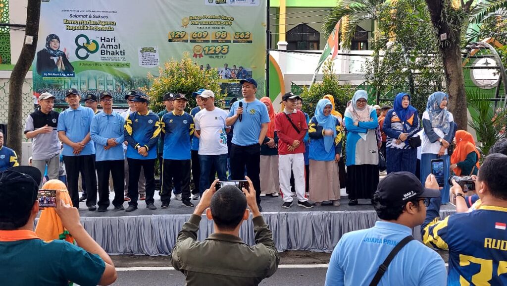Kota Malang – Dalam rangka memperingati Hari Amal Bakti (HAB) Kementerian Agama Republik Indonesia ke-80, GTK MAN 2 Kota Malang menyemarkkan kegiatan Jalan Sehat Kerukunan dengan tema “Umat Rukun dan Sinergi, Indonesia Damai dan Maju” yang diadakan oleh Kantor Kementerian Agama Kota Malang.
