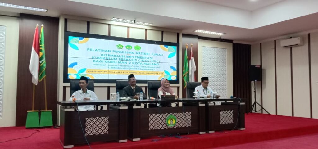 Kota Malang – MAN 2 Kota Malang menggelar Pelatihan Penulisan Karya Ilmiah dan Diseminasi Implementasi Kurikulum Berbasis Cinta pada Senin (15/12) bertempat di Gedung Laboratorium Sains, Ruang Auditorium Lantai 4, mulai pukul 09.00 s.d 12.00 WIB. Kegiatan ini dipandu oleh MC Shofa Abidah, M.Pd., dan diikuti oleh para guru sebagai bagian dari pengembangan keprofesian berkelanjutan.