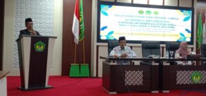 Ketua Jurnal Ilmiah Madrasah (JIM), Mishad, S.Pd., M.Pd., memaparkan pentingnya riset dalam penulisan artikel ilmiah.