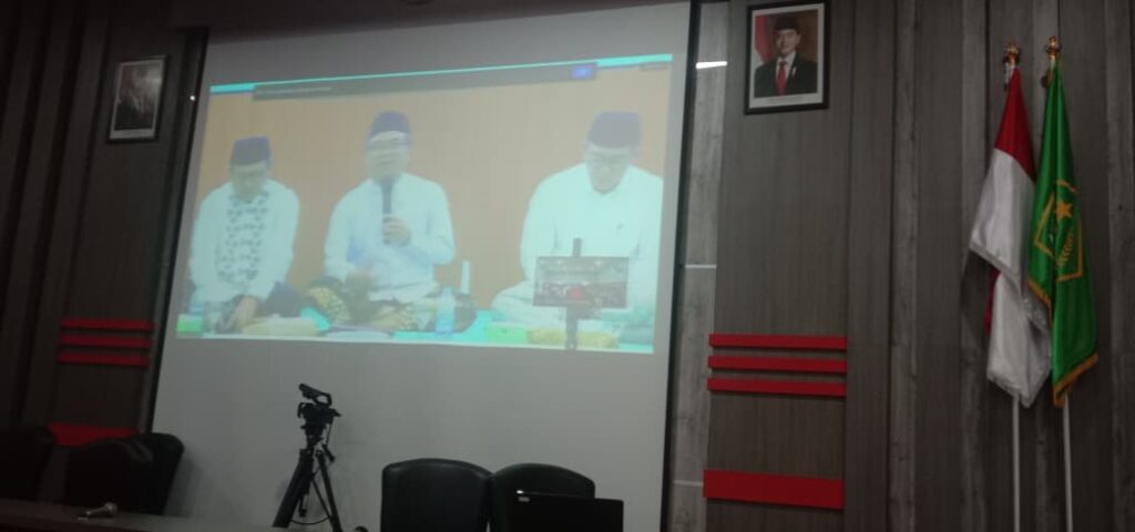 Bertempat di Ruang Multimedia Lantai 3, acara yang mengusung tema “Umat Rukun dan Sinergi Indonesia Damai dan Maju” ini tidak hanya menjadi ajang silaturahmi virtual, tetapi juga menjadi momentum penguatan spiritual bagi seluruh ASN melalui rangkaian Tawassul, Istighotsah, dan doa bersama. Suasana semakin semarak dengan persembahan qosidah dari grup rebana Kanwil Kemenag Jatim yang menambah nuansa religius dan harmonis.