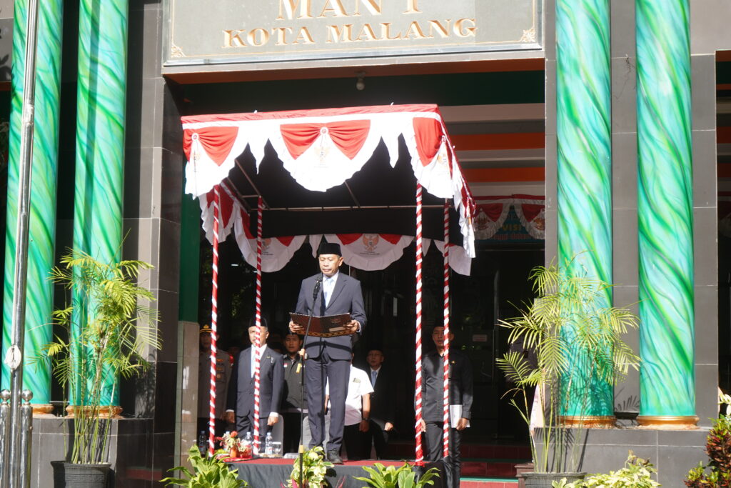 Upacara ini dipimpin langsung oleh Inspektur Upacara Dr. Wahyu Hidayat, M.Si., Wali Kota Malang, yang sekaligus membacakan teks sambutan Menteri Agama Republik Indonesia. Disisi lain, agama juga dipandang sebagai pencerah peradaban dunia sejak abad pertengahan hingga kini, termasuk dalam menghadapi tantangan era kecerdasan buatan (AI) dan penggunaan teknologi yang beradab.