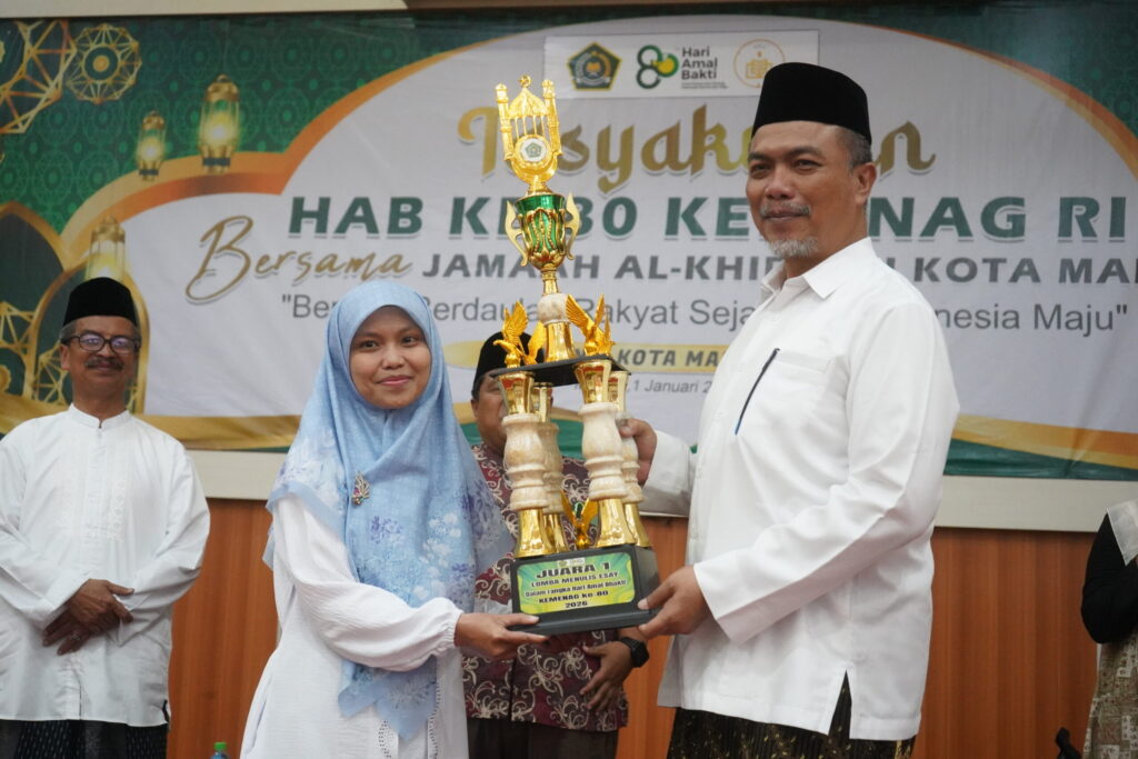 Kota Malang – Pada Kamis (1/1/2026), MAN 2 Kota Malang berhasil meraih kejuaraan umum dalam ajang Lomba Menulis Esai Hari Amal Bakti (HAB) Kementerian Agama ke-80. Penyerahan hadiah dilaksanakan di Aula Utama MAN 2 Kota Malang bersamaan dengan kegiatan Tasyakuran dan Khotmil Qur’an seluruh satuan kerja Kemenag Kota Malang. Penghargaan tersebut diserahkan langsung oleh Kepala Kemenag Kota Malang, KH. Achmad Shampton, S.HI., M.Ag., bersama Gus Baihaqi. Kegiatan ini dilaksanakan pukul 10.00 sd 11.20 WIB.