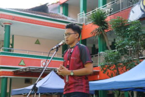 Wakil Kepala Madrasah Bidang Kesiswaan, Alif Rifa’i, S.S., turut memberikan sambutan sekaligus mewakili Kepala Madrasah yang berhalangan hadir.