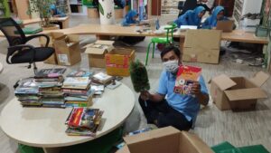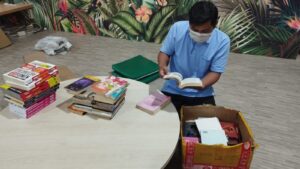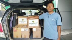 Buku-buku tersebut kemudian dikemas dalam 14 kardus sebelum diserahkan kepada Kantor Kementerian Agama Kota Malang sebagai bagian dari program wakaf buku untuk mendukung penguatan literasi di lingkungan madrasah.