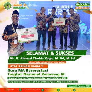 Guru MAN 2 Kota Malang, Ahmad Tohir Yoga Lolos Grand Final GTK Madrasah Tahun 2022