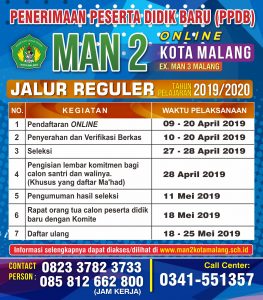 PPDB MAN 2 KOTA MALANG (EX. MAN 3 MALANG) JALUR PRESTASI DAN TERPADU 2019/2020