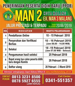 PENERIMAAN PESERTA DIDIK BARU MAN 2 KOTA MALANG (EX. MAN 3 MALANG) 2018/2019